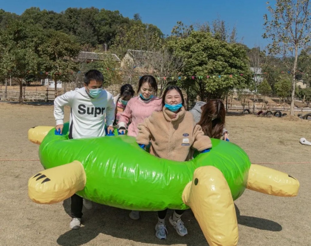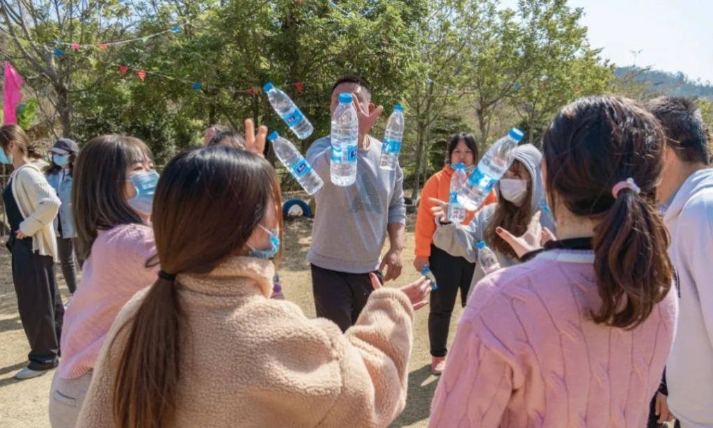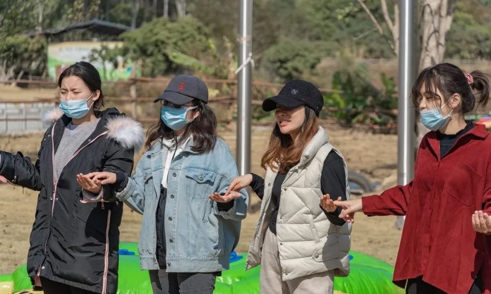 ?? 蒙眼聽口令達(dá)到指定目的地:老師們將眼睛蒙起來,聽從口令,帶領(lǐng)小組的所有成員到達(dá)指定地點,則為成功。老師們彼此間相互信任,手牽著手,手搭著肩膀,聽著口令一步步成功的到達(dá)指定地點,完美的展現(xiàn)了彼此間的默契和信任。
